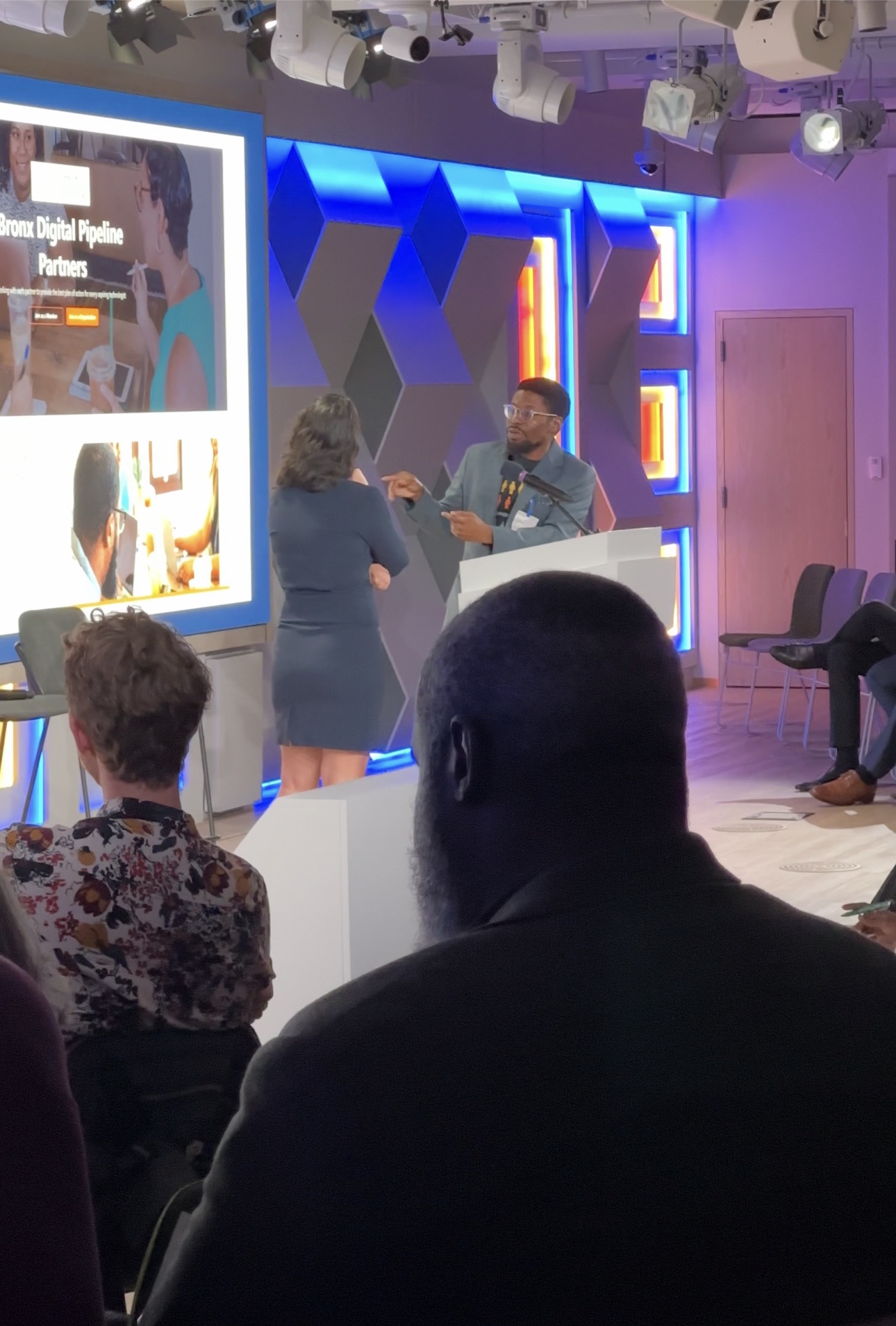 On Friday, October 6, 2023, we joined the NYC Employment & Training Coalition (NYCETC) and Google for their 'Building the Tech Bridge' event at Google's NYC Headquarters. Gregory J Morris, NYCETC's CEO, and Angela Pinsky, Head of Government Affairs for Public Policy for Google New York, welcomed attendees. Through dynamic panel discussions and pitches, students, providers, intermediaries, and philanthropists explored ways to strengthen partnerships in the tech training ecosystem.
